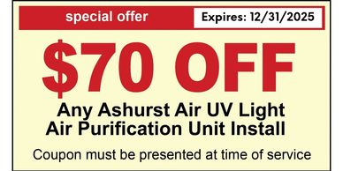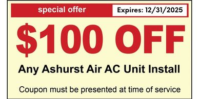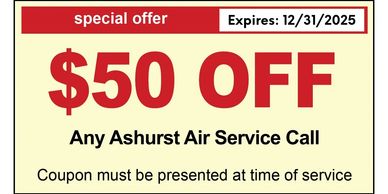 Whatever, whenever, wherever your AC needs, Ashurst Air is there! With this coupon you get a cool $50 Off when we get there!